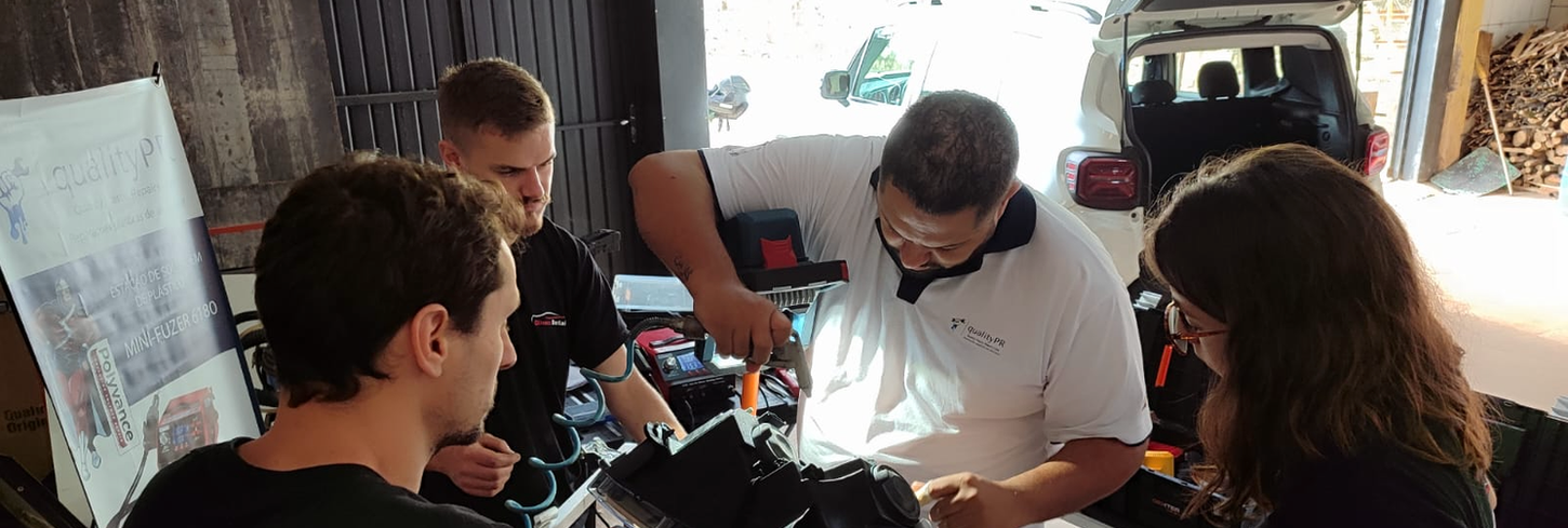 Nossa abordagem integral garante que o pessoal da sua oficina se torne verdadeiros especialistas em reparo de plásticos automotivos. Ensinamos técnicas avançadas utilizando os melhores equipamentos e materiais disponíveis no mercado. Além disso, nossos treinamentos são certificados pela Polyvance, garantindo a mais alta qualidade e aproveitando sua vasta experiência em solda plástica.